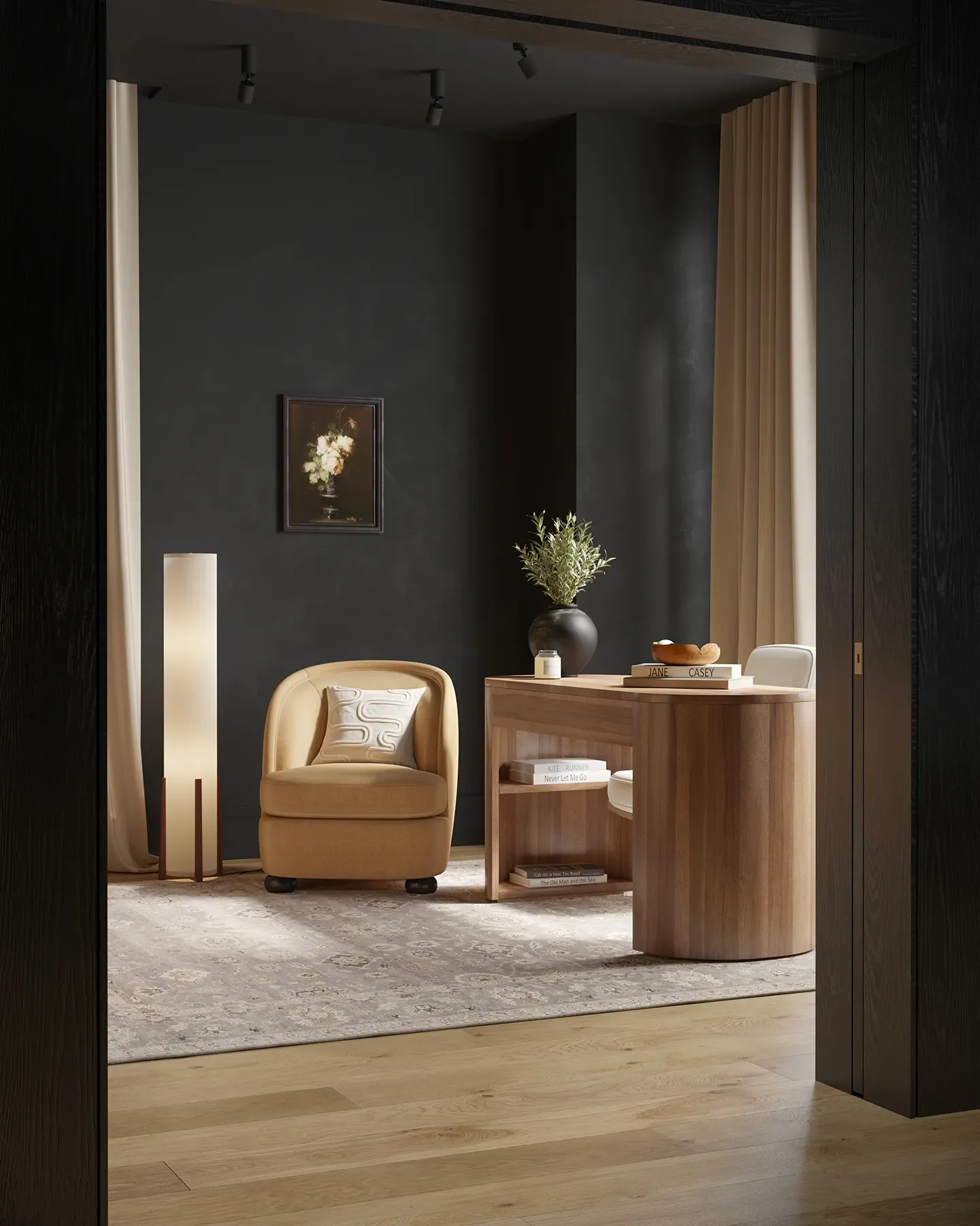 This streamlined home office combines soft natural light with a muted, calming palette to create a space designed for focus and productivity. Sleek surfaces and subtle textures keep the environment serene yet purposeful, while thoughtful detailing and custom furnishings elevate its functionality. Designed by STUDIO LEINIK in New York City, the Lexington Home Office reflects our philosophy of creating timeless residential interiors through bespoke furniture design, refined materials, and a harmonious balance of simplicity and sophistication.